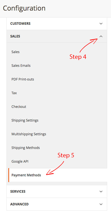 - Step 5: Select “Payment Methods”