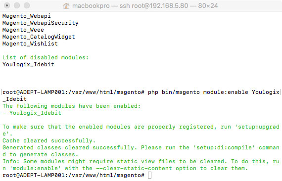 php bin/magento module:enable Youlogix_Idebit